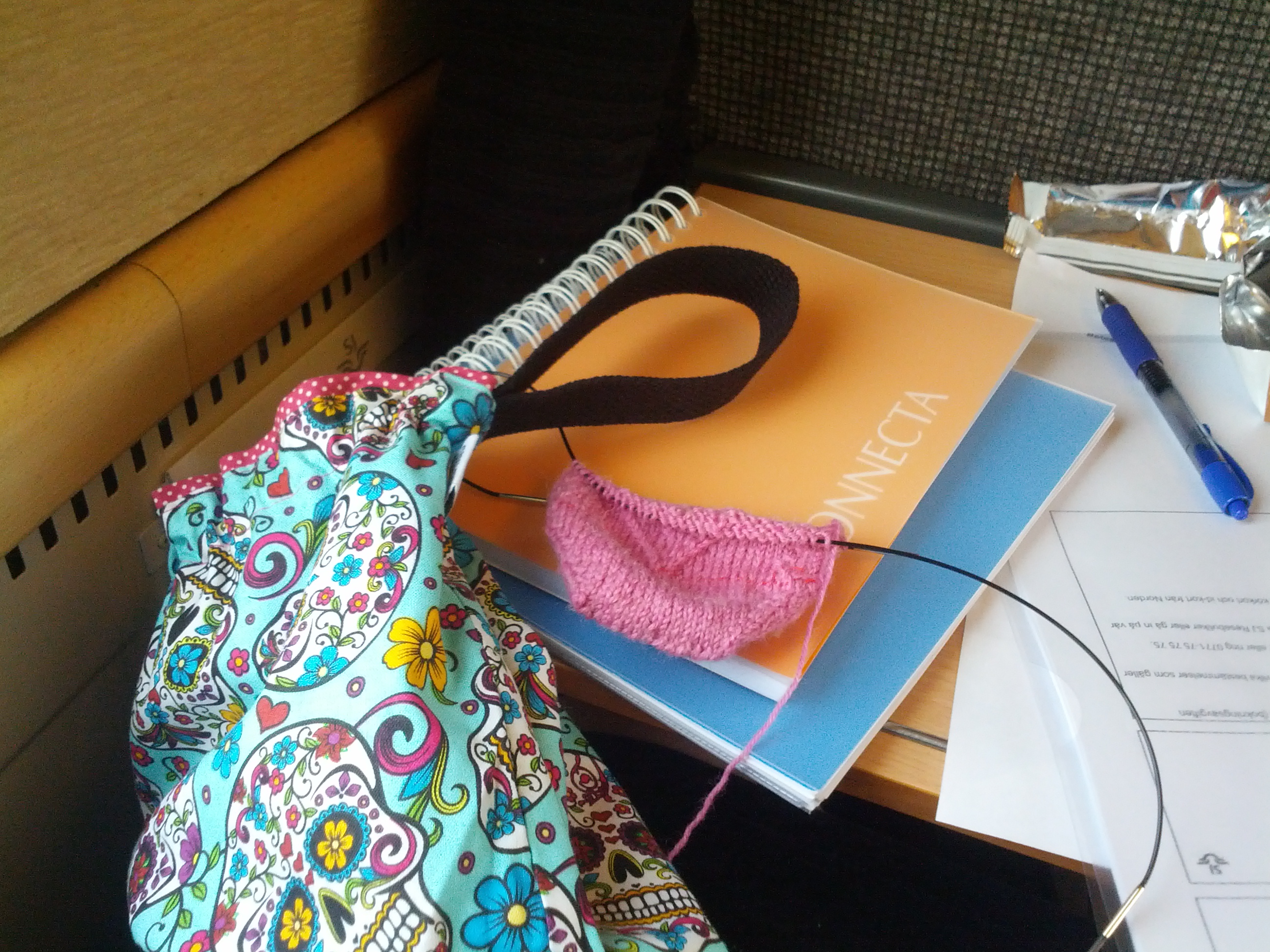 On said train, I’m supposed to be working. After all, there are people in Gothenburg who expect me to speak competently and I’m not completely prepared. But it’s a three hour train ride from Stockholm to Gothenburg and getting onto said train was stressful (long story) so I figured I deserved to work on my Rosy Posy socks for a bit.