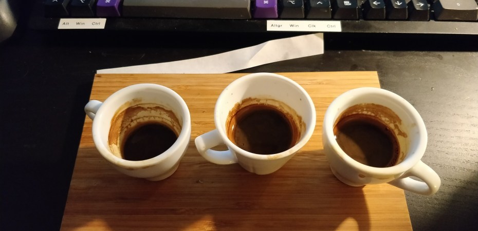 In all fairness, I didn’t set out to drink three shots of espresso. I realized that the grind on the beans was a little too coarse, so adjusted and made another shot. Then another. All three tasted slightly different, too!