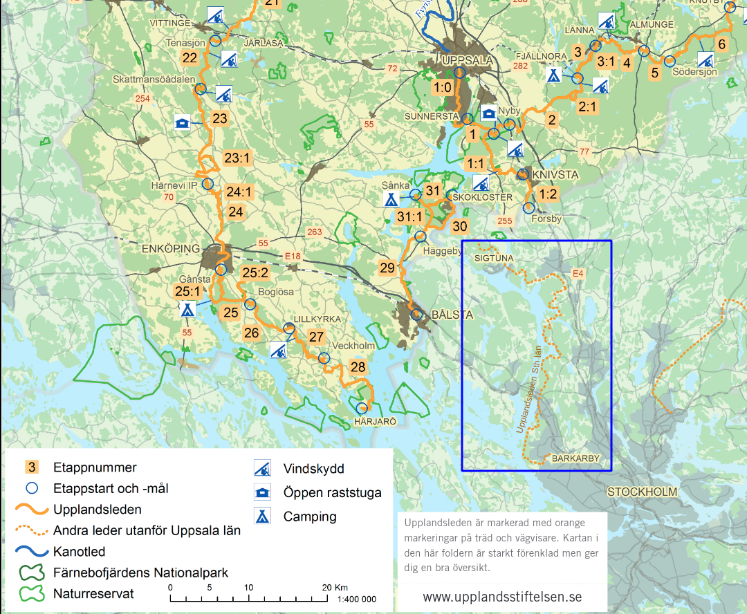 If you want to know more about the other parts of Upplandsleden, I can recommend the Upplandsstiftelsen site. I also found the Calazo Vandra Upplandsleden book helpful for a description of each stage.