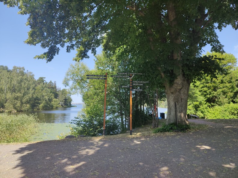 A good portion of this stage goes through Görvälns naturreservat. It’s not on the route, but don’t forget to stop and admire the view at Gåseborg. Right after Gåseborg is a bbq area right off the trail, with a small shelter tucked behind it. Sandviken has a lovely little beach, a pier, and a cooking area with picnic table.