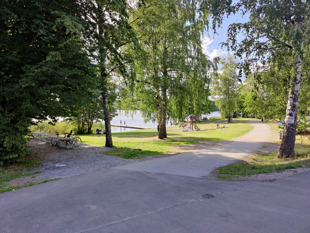 The last section and final kms consisted of a wide, smooth paved path. It went past Bonäsbadet and then continued straight on to Kallhällstation.