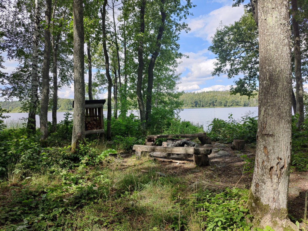There’s a lovely camping/fire spot right on the lake, supplied with wood. There is even a small path down to the water so you could stop here with a small boat.