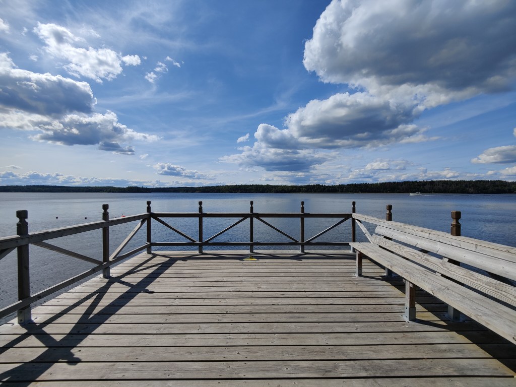 There are a bunch of beaches along this area, all part of the Ängsjö friluftsgård / recreation area. I found this deck looking out onto the lake: