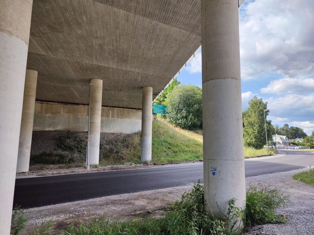 After continuing along a boring but easy stretch of two-track road, I came out at Stäcket – I’d been curious about this as I know the path goes under the highway system here but I didn’t know exactly where. Here’s the underpass: