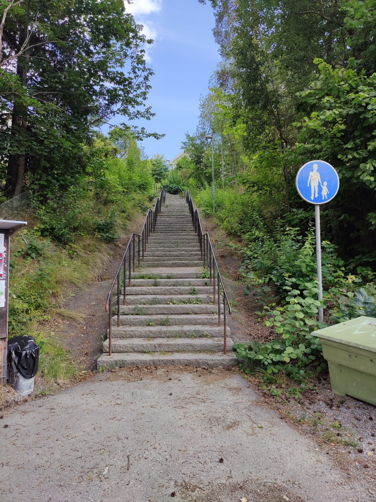 Up until this point, the path had been easy to follow but then I missed a turn due to construction. After studying the map, I could either go up these massive stairs and make a loop – or just go straight on and catch the trail again in a few hundred meters. My sense of completionism (and the thought that I’d be blogging this :)) made me decide to take the stairs. I did start counting them, but stopped around 40 when I realized that there were even more steps than I realized.