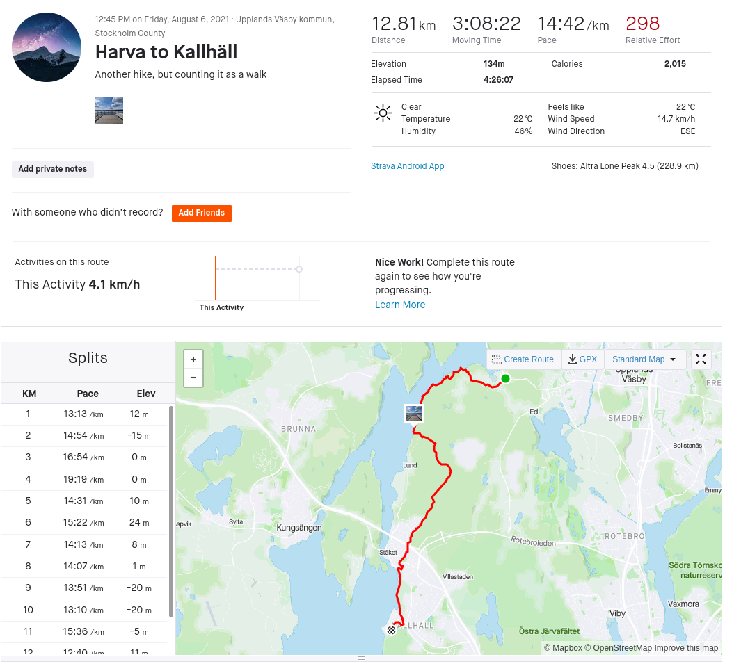 You can find the route on Strava – here’s the actual log from the walk/hike:
