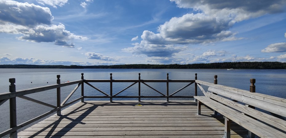 There are a bunch of beaches along this area, all part of the Ängsjö friluftsgård / recreation area. I found this deck looking out onto the lake: