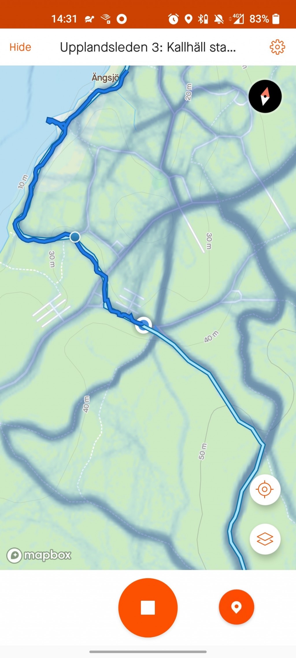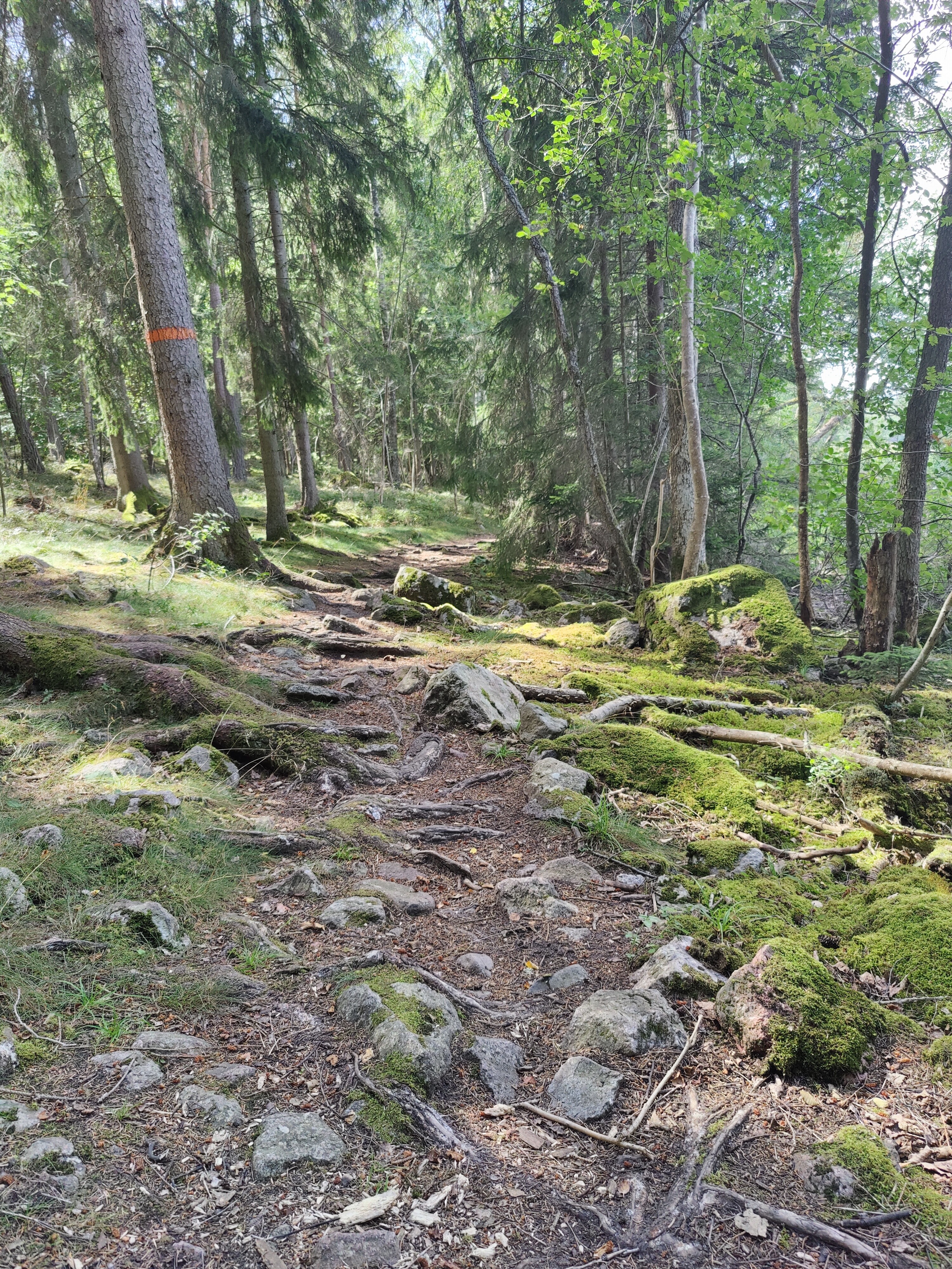 The path veers off the road into proper trails again – and hey, it’s an orange birdhouse to mark the way! I spotted these all throughout the Upplands Väsby section of Upplandsleden.